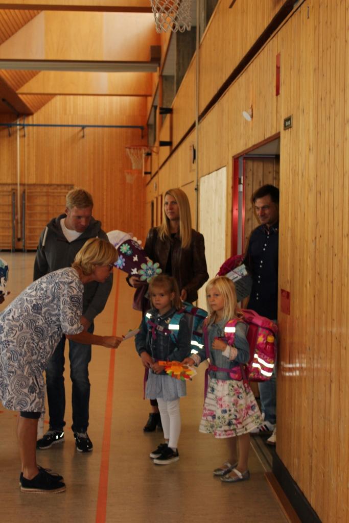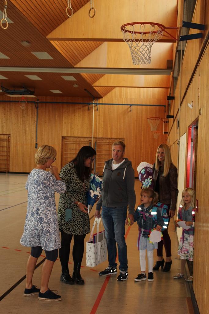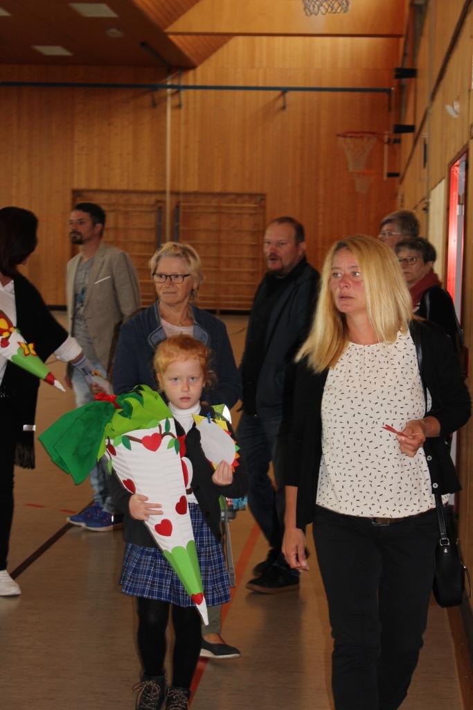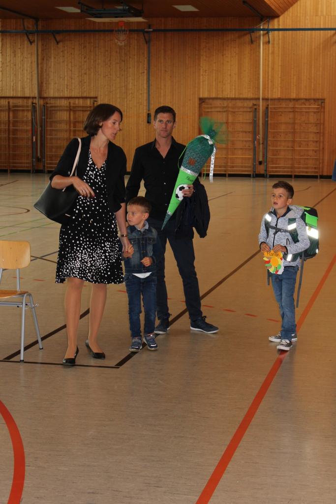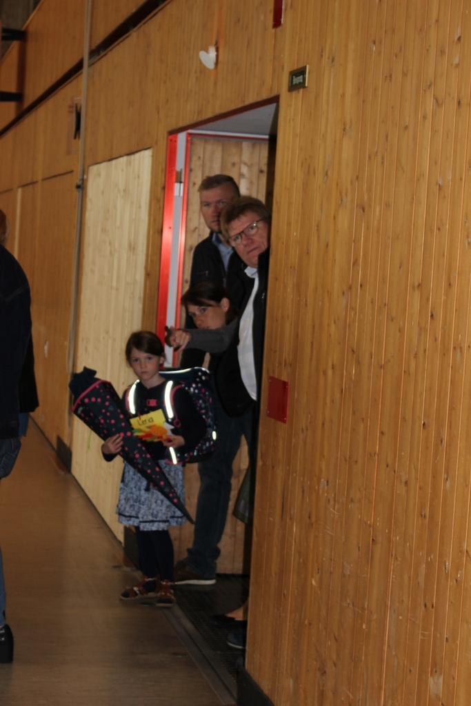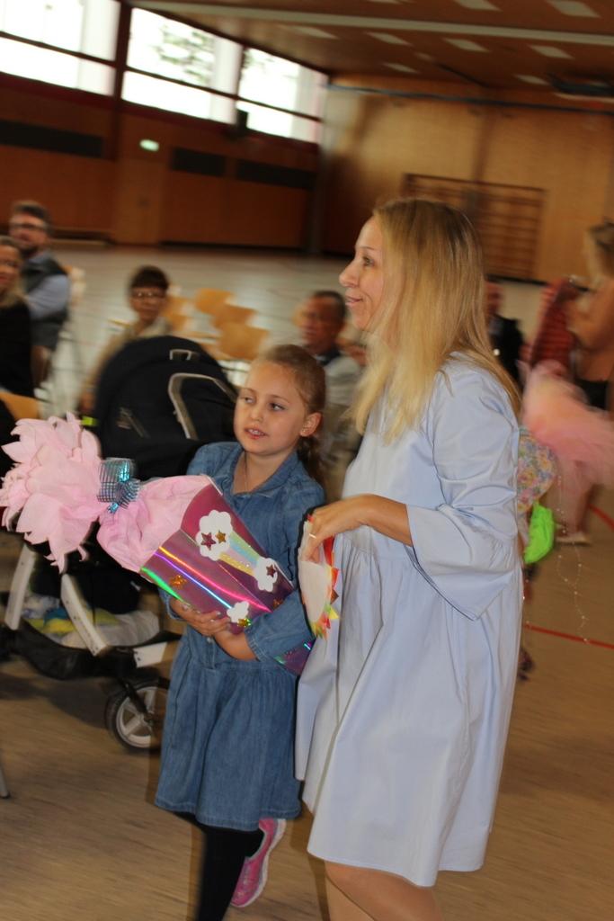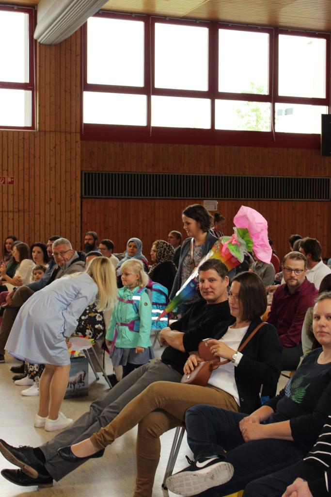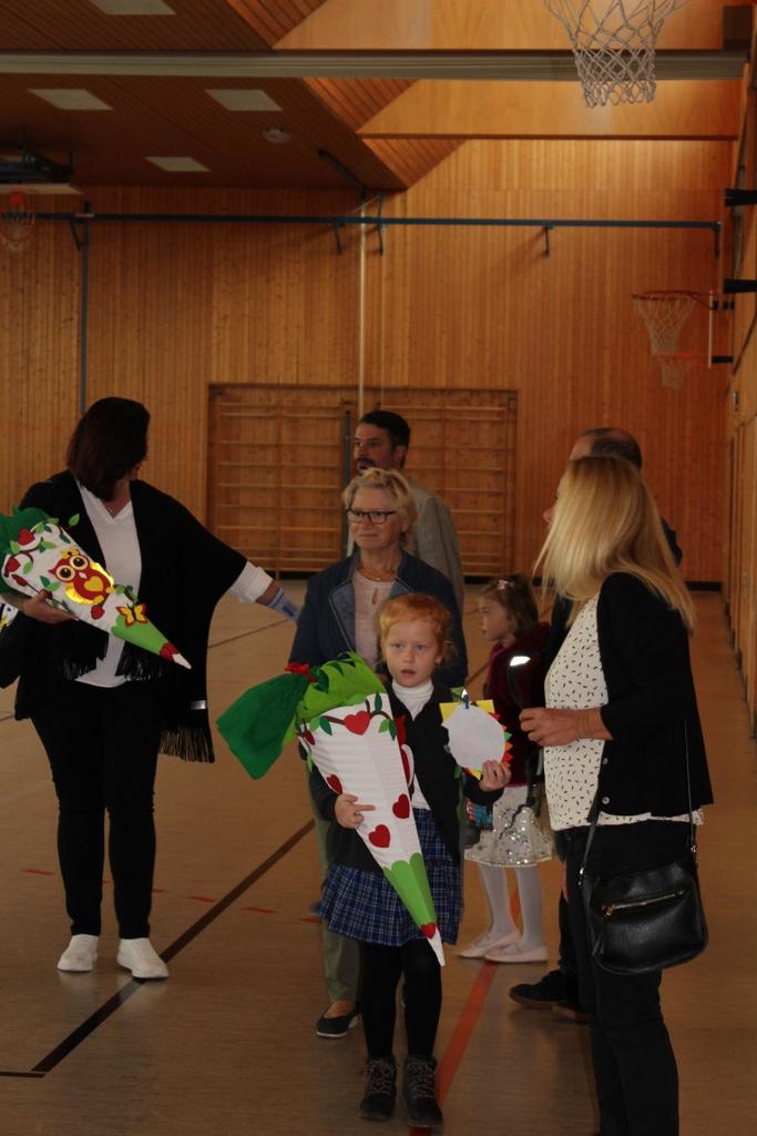 Nach den gelungenen Gesangs- und Tanzdarbietungen der zweiten Klassen machten sich die neuen ErstklässlerInnen gemeinsam mit ihren Lehrerinnen Frau Gil (1a) und Frau Köglmaier (1b) auf den Weg in ihre Klassenzimmer, um dort ihre erste Schulstunde zu erleben. Für die Eltern und weiteren Gäste organisierte der Elternbeirat ein kleines „Elterncafé“.