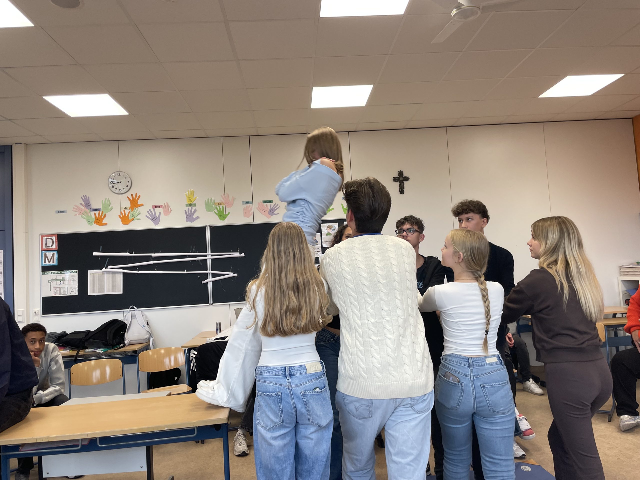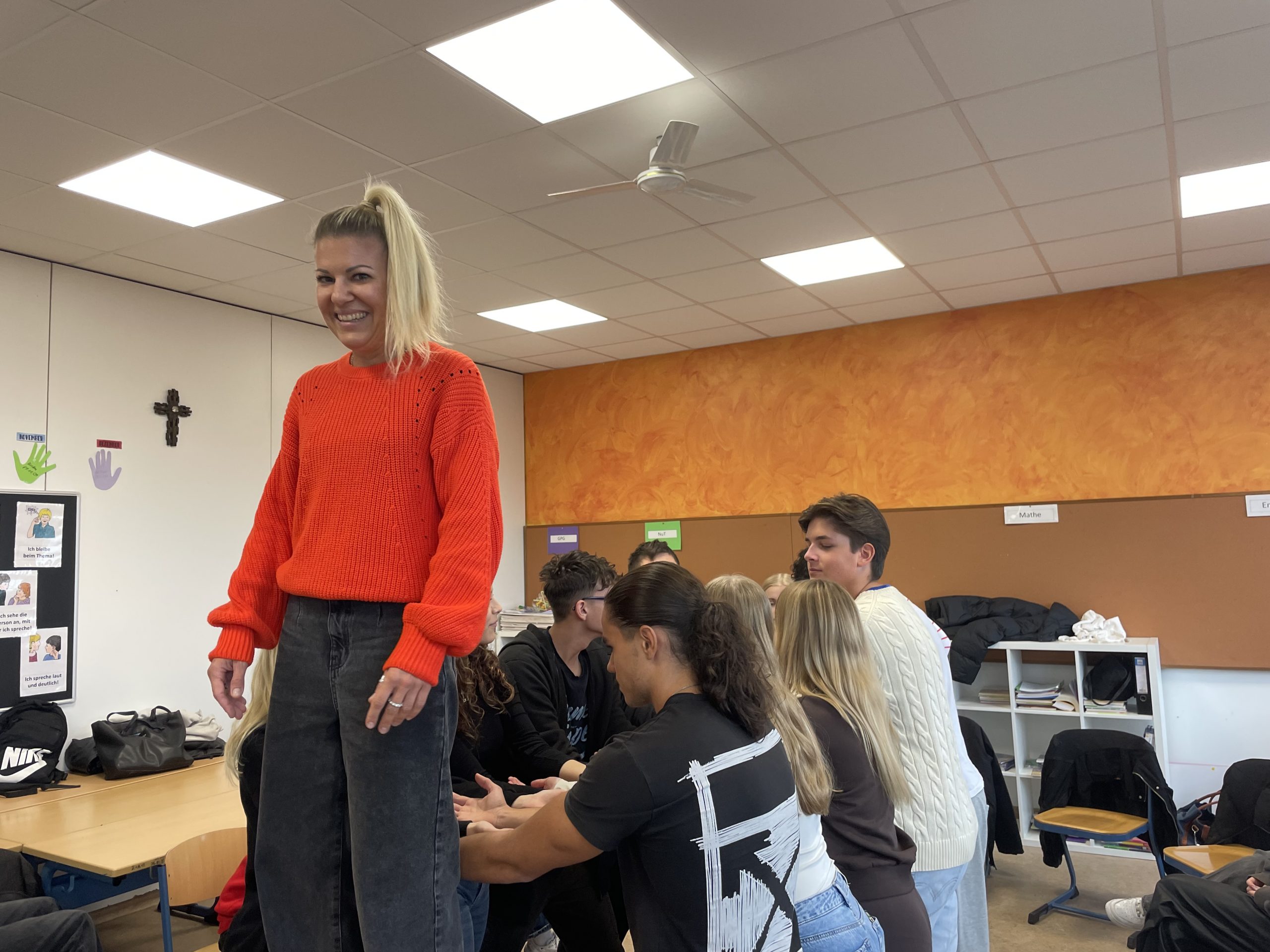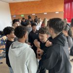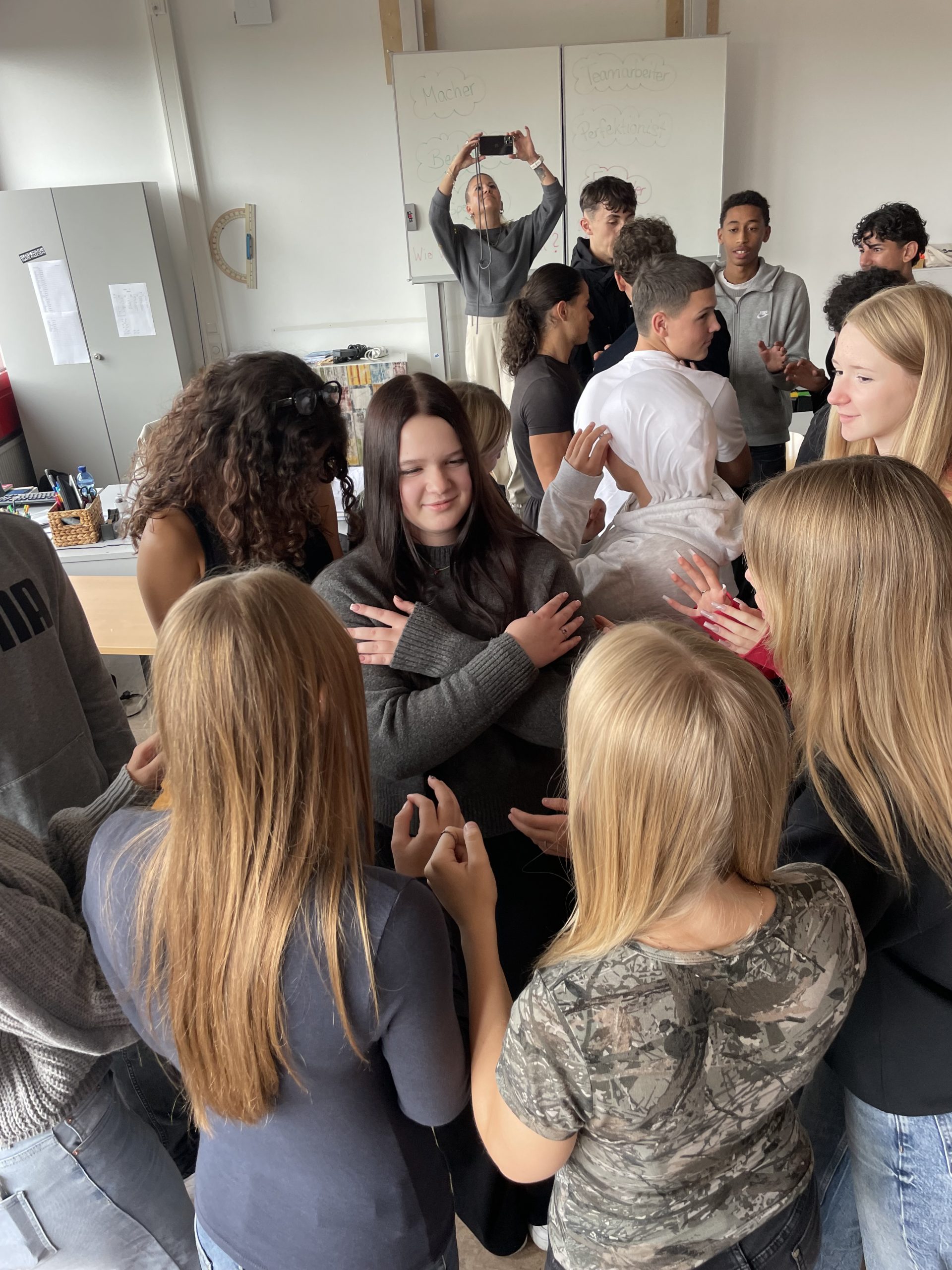 Am 29. Und 30. September besuchte unsere Schulsozialarbeiterin Andrea Mank-Erl die Klasse 9V. Zusammen mit der Klassenleiterin Nadine Hiller gestalteten sie zwei pädagogische Tage, die es den Schülerinnen und Schülern einfacher machen sollten ihre KlassenkameradInnen kennenzulernen. Durch Teamspiele und gemeinsame Erfahrungen sollte das Miteinander gestärkt und ein gegenseitiges Vertrauen entwickelt werden.